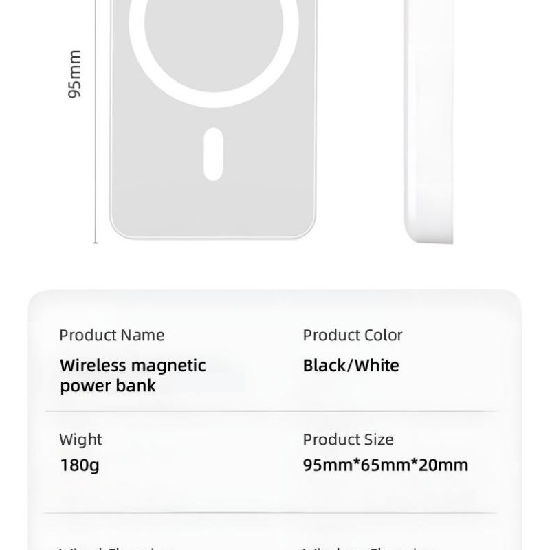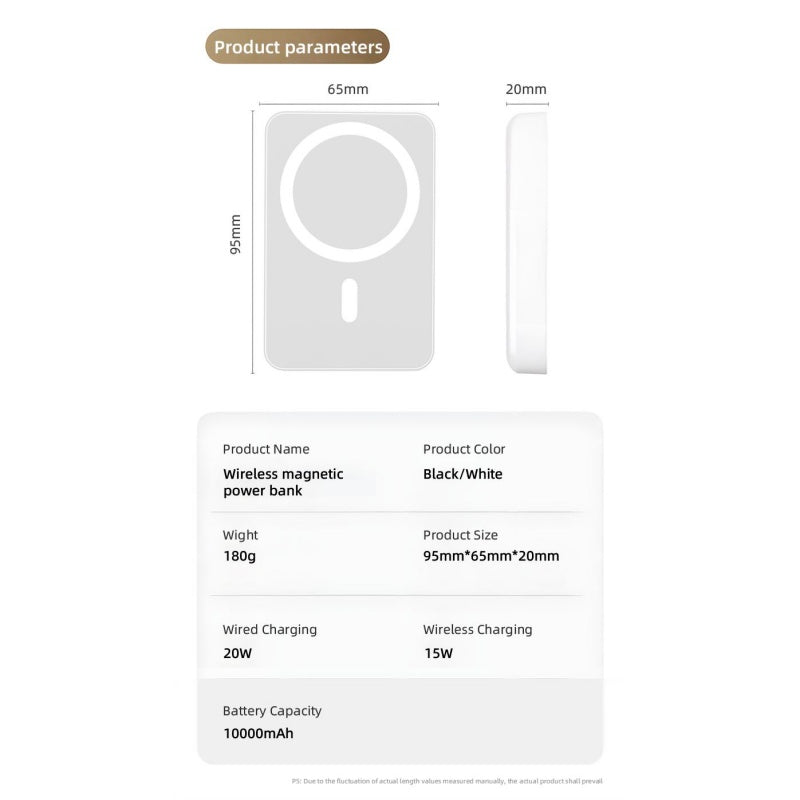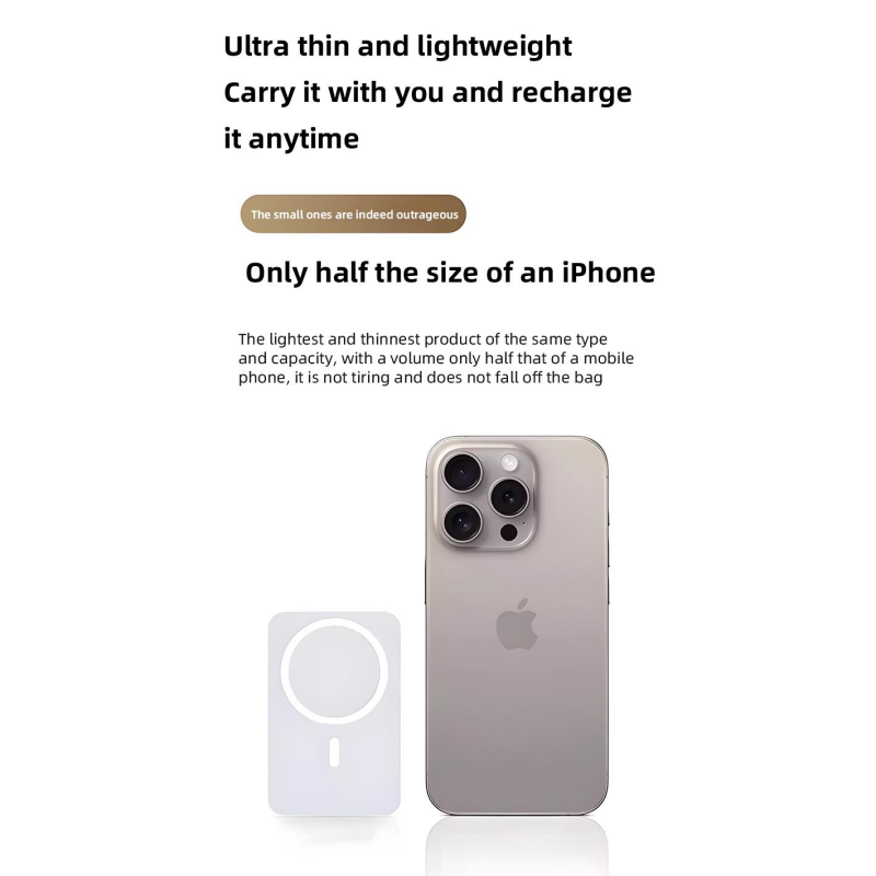 Discover Ultimate Convenience with Our Portable Magnetic Fast Charging Power Bank** Introducing the Portable Magnetic Fast Charging Power Bank, your go-to solution for uninterrupted power on the go! This Small Mini Power Bank isn't just compact and sleek; it's packed with cutting-edge technology to keep your devices juiced up effortlessly. **USB-C Output for Versatile Charging** Equipped with a USB-C output, this power bank offers high-speed charging compatibility with a wide range of devices. Whether you're topping up your latest smartphone, tablet, or even laptop, it handles the task with ease and efficiency. **10000mAh Large Capacity for Extended Use** Boasting an impressive 10000mAh capacity, this power bank ensures you have enough juice to keep multiple devices powered throughout the day. From daily commutes to long travel adventures, it's your reliable energy companion. **MagSafe Wireless Power Bank for Effortless Charging** Experience the future of wireless charging with our MagSafe Wireless Power Bank. Designed specifically for iPhone users, it seamlessly attaches to your iPhone 16/15/14/13/12/Pro/Mini/Pro Max, providing fast, efficient, and hassle-free power delivery. Say goodbye to cables and hello to effortless charging! Upgrade your charging experience today with our Portable Magnetic Fast Charging Power Bank – where convenience meets innovation!
